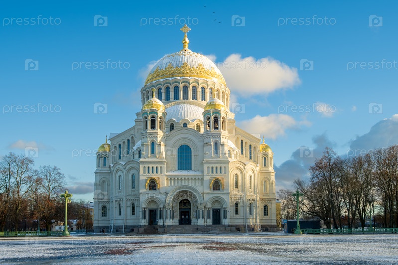 Кронштадт, Санкт-Петербург, Россия - 11.15.25.Снежный день в военно-морском соборе Святого Николая