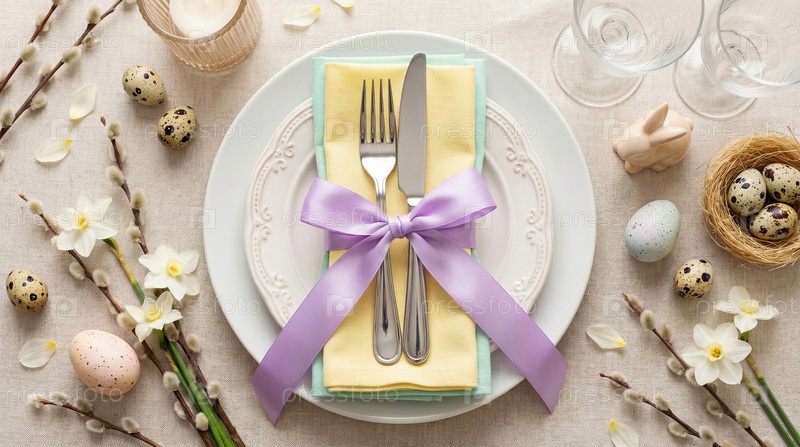 Элегантная пасхальная столовая установка с красочным дисплеем яиц