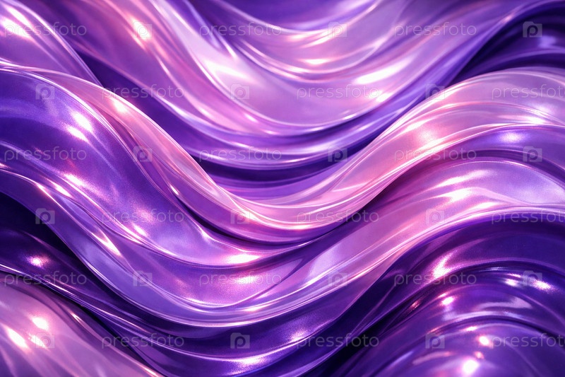 Переплетенные глянцевые волны фиолетово-розово-перламутровая абстрактная 3D текстура с металлическим блеском, плавными сатиновыми складками и отражениями для фона, упаковки и графического дизайна