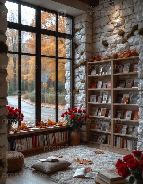 Белый камень и мох Внутренняя осенняя атмосфера