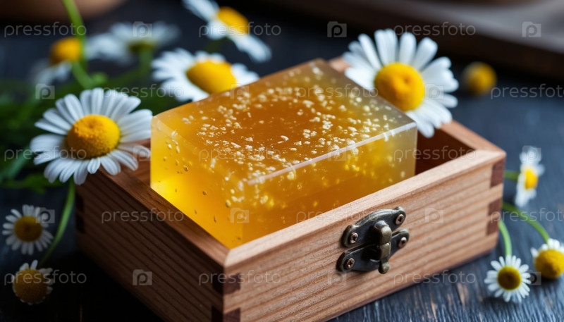 Естественное мыло из ромашки в подарочной деревянной коробке