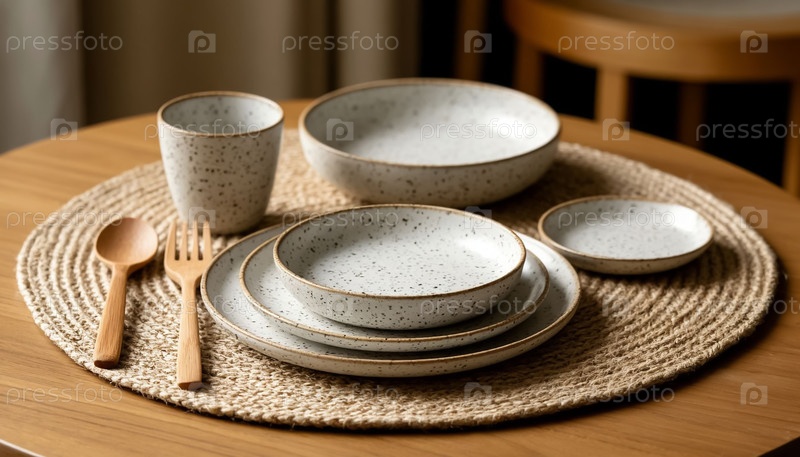 Модный керамический набор посуды с деревянными столовыми приборами