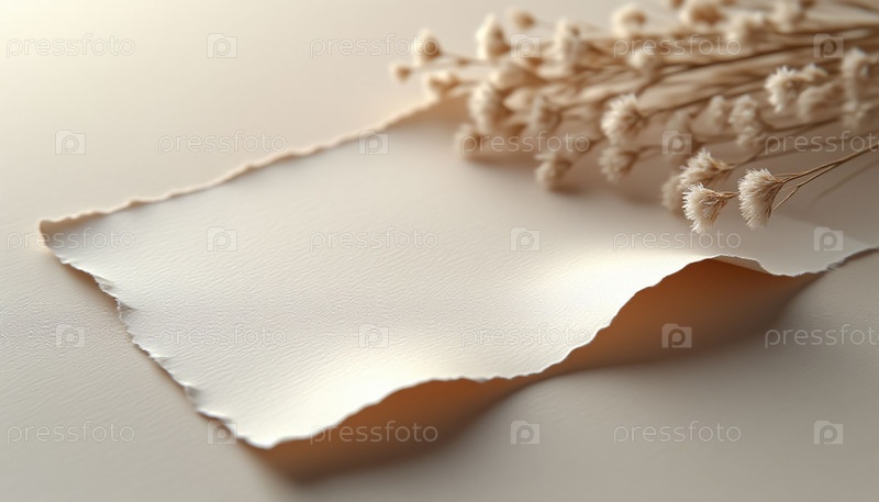 Пастельная деликатная бумага с грубыми краями и сухими цветами, созданная искусственным интеллектом
