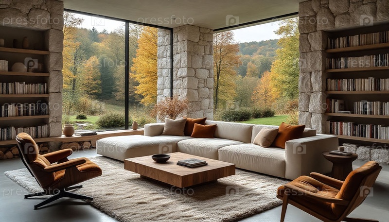 Осенний уютный номер с натуральным камнем и мохом