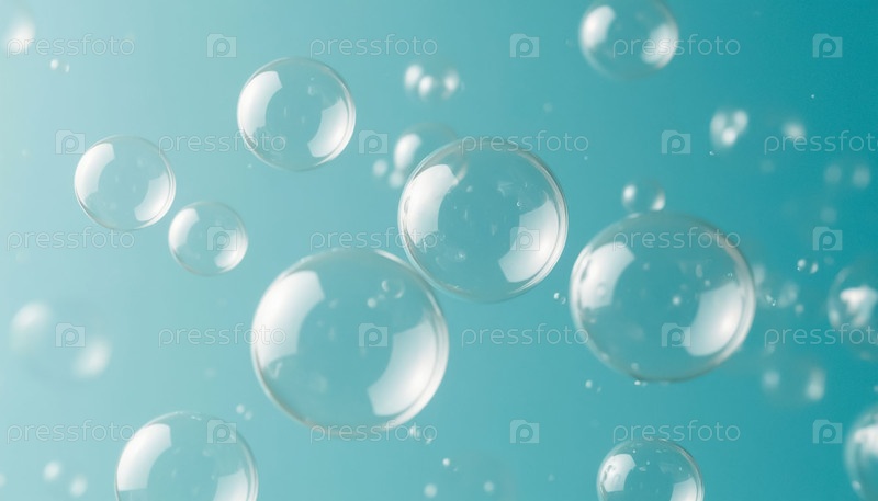 Мыльные пузыри на светло-синем фоне