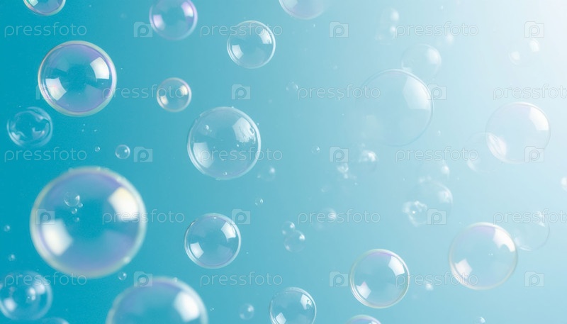 Мыльные пузыри на светло-синем фоне
