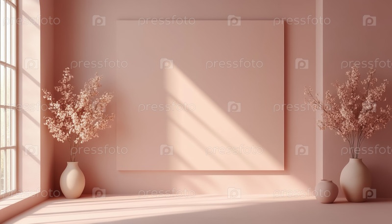 Розовая стена с пастельной рамой пустой деликатный макет декора