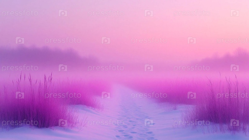 Футуристический лиловый туманный рассвет в лавандовом поле