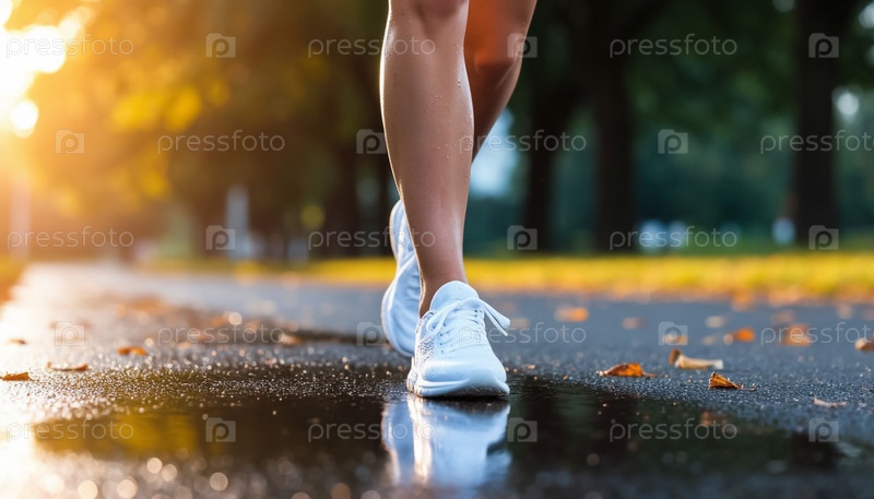Женские ноги в белых кроссовках, бегущие