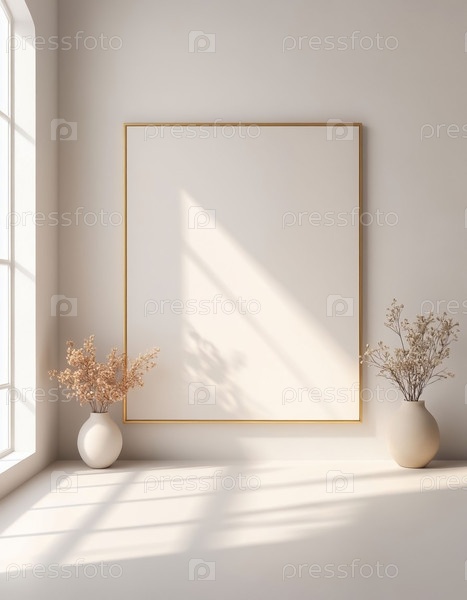 Белая стена с пастельной рамой пустой деликатный макет декора