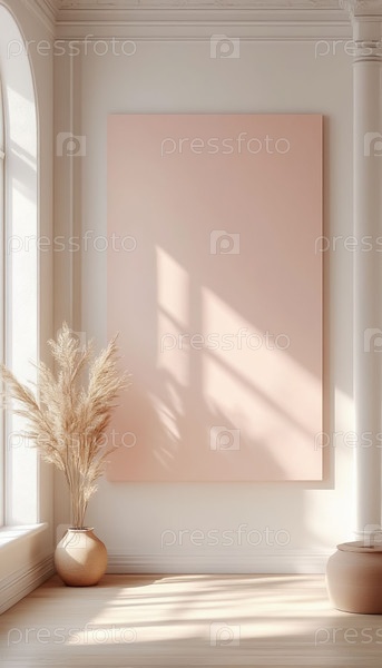 Пастельная пустая рама на белой стене минималистический декоративный макет