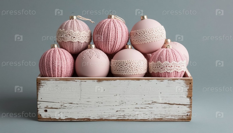 Пастельная вязаная шерсть Рождественские шары в белой окрашенной деревянной коробке