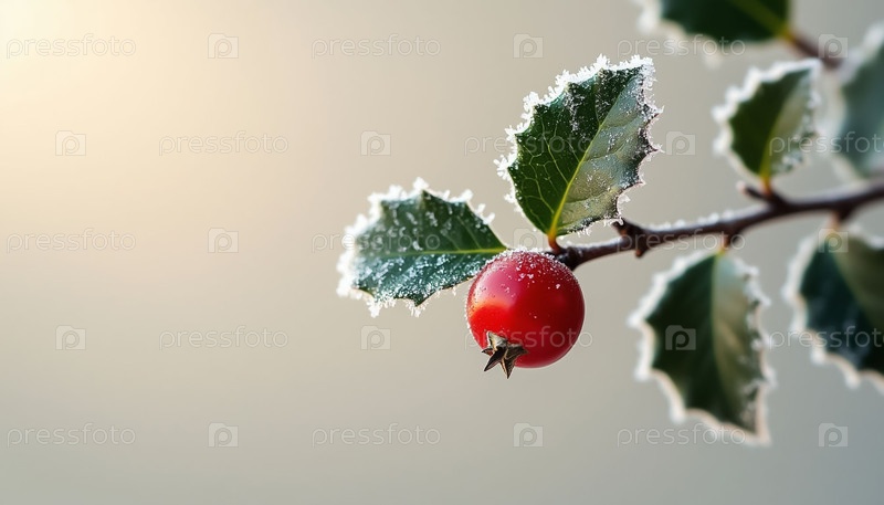 Ледяная зимняя ягода на зеленой ветви