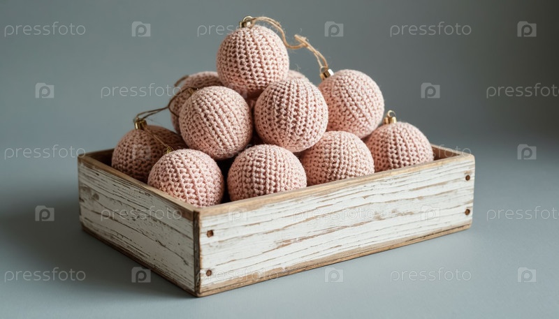 Пастельная вязаная шерсть Рождественские шары в белой окрашенной деревянной коробке