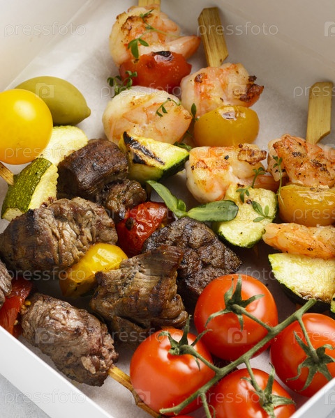Разнообразные закуски для общественного питания в картонной коробке