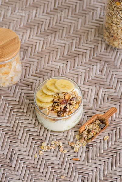 Йогурт с мусли и банановым йогуртом
