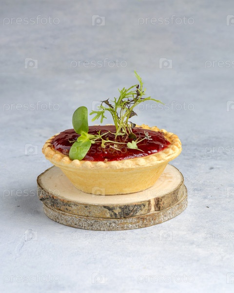 Тортлет с варенью на светлом фоне