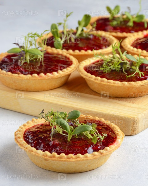 Тортлет с варенью на светлом фоне