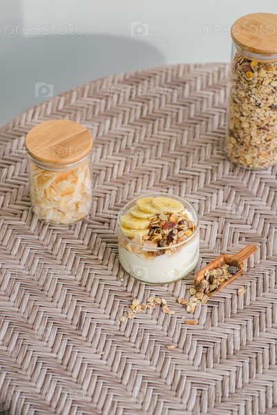Йогурт с мусли и банановым йогуртом