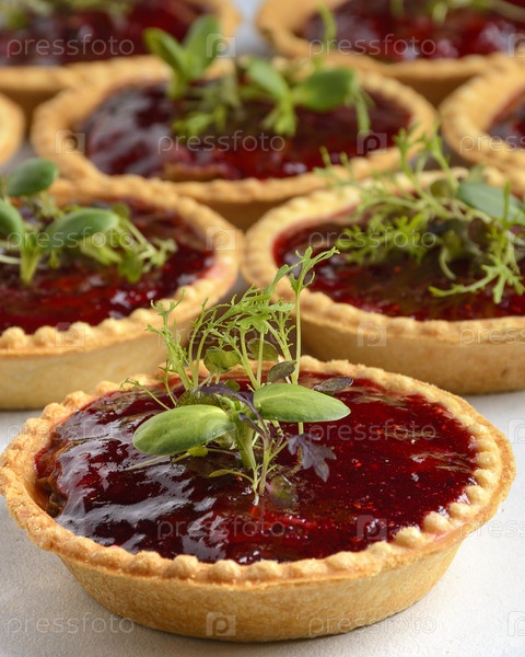 Тортлет с варенью на светлом фоне