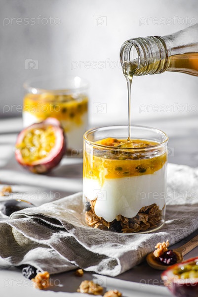 Десерт с йогуртом и фруктами страсти