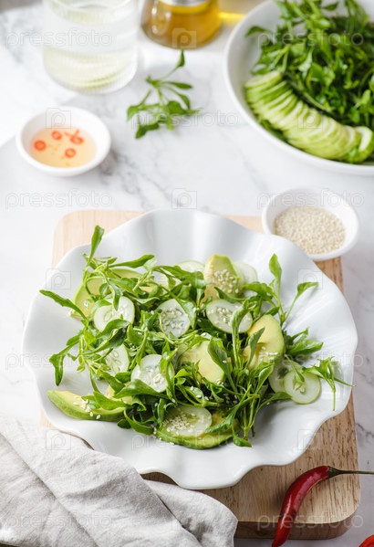 Зеленый салат с огурцом и авокадо