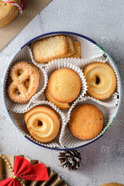 Печенье в рождественской коробке на светлом фоне