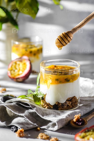 Десерт с йогуртом и фруктами страсти