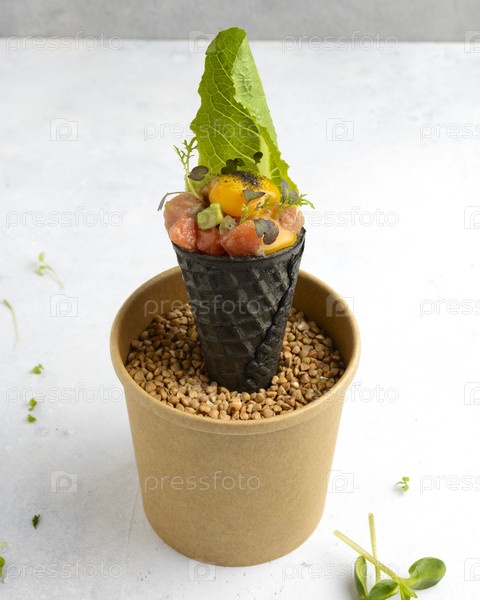 Тартар лосося с порциями для общественного питания