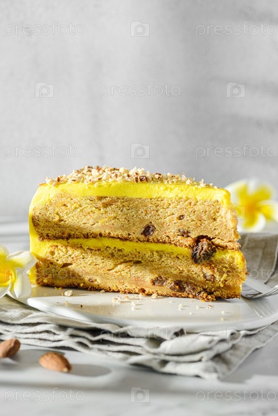 Кусок морковного торта с изюмом макро