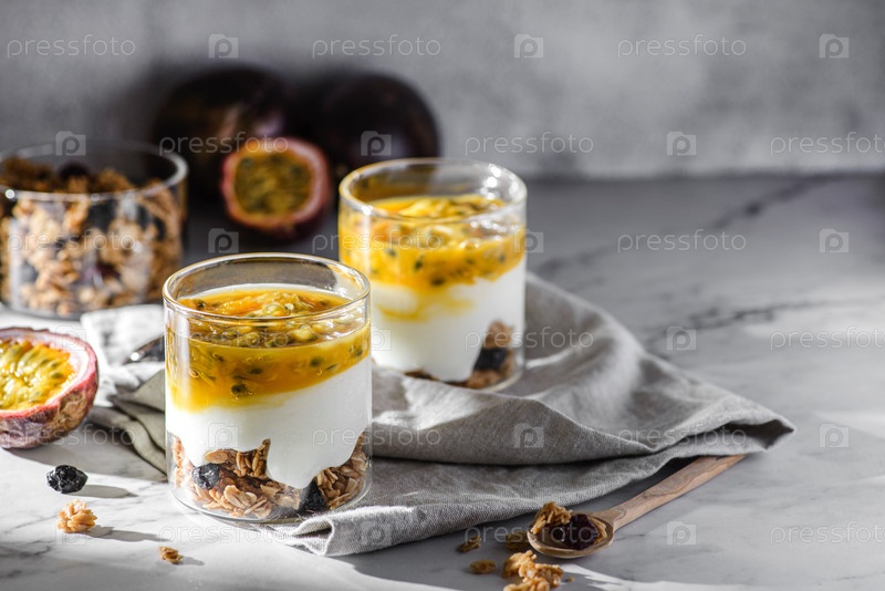Десерт с йогуртом и фруктами страсти