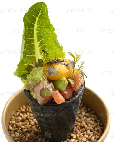 Тартар лосося с порциями для общественного питания