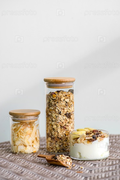 Йогурт с мусли и банановым йогуртом