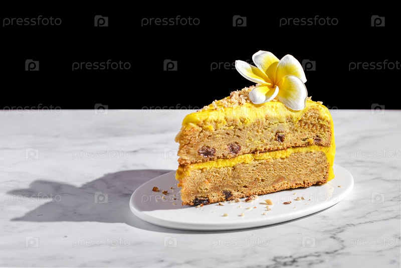 Кусок морковного торта со сливком