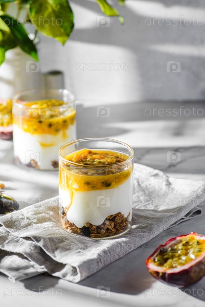 Десерт с йогуртом и фруктами страсти