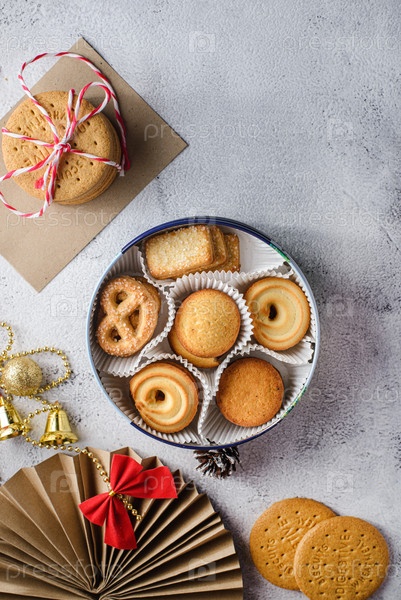 Печенье в рождественской коробке на светлом фоне