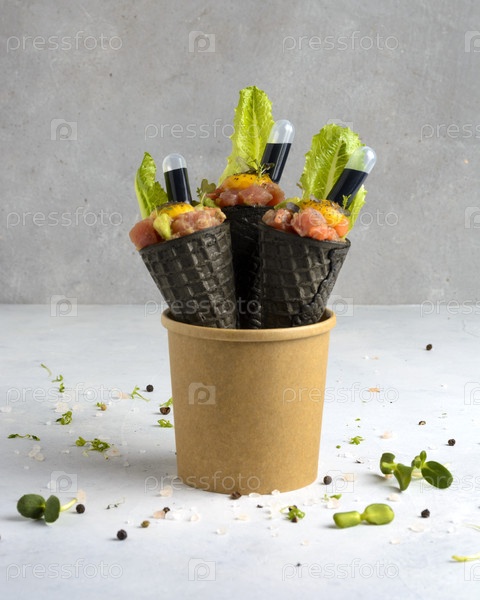 Тартар лосося с порциями для общественного питания