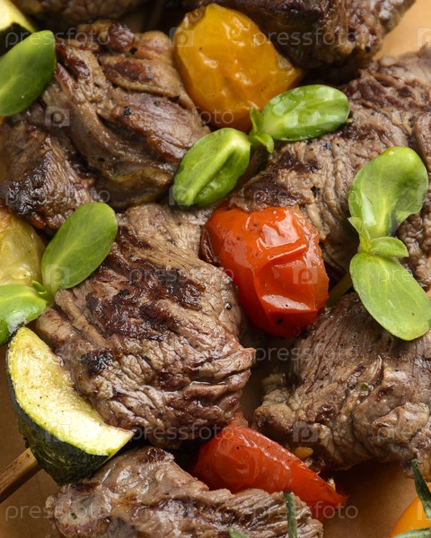 Кэбабы из говядины с овощами на косточках