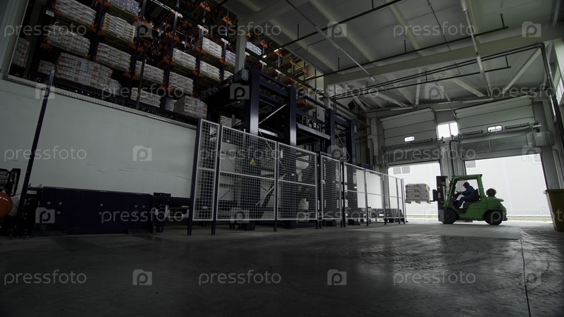 Сербия - Белград, 25 августа 2022: Люди и транспортные средства работают на складе.Креативность. Концепция промышленного производства, высокая рабочая эффективность