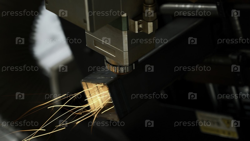 Машина для лазерной резки металла делает резку металлической детали.Креативность.Современная технология резания металлов, яркие вспышки искр
