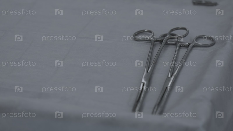 Близкий взгляд на инструменты из нержавеющей стали.Действие.Медицинские инструменты в больнице