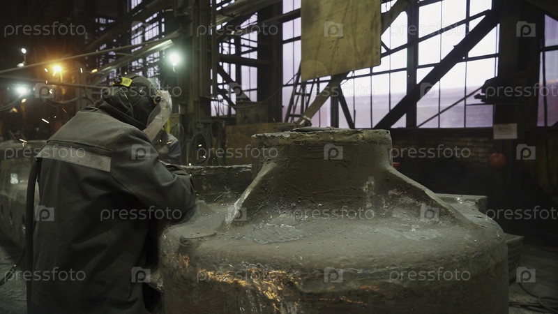Промышленная мастерская с участием рабочих, занятых различными типами машин и инструментов