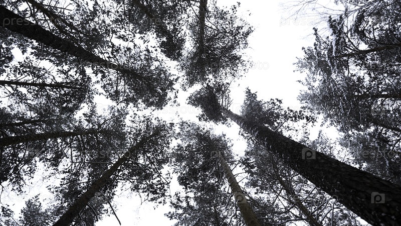 Деревья и стволы, покрытые снегом и льдом, вид снизу СМИ Красивые кроны деревьев в зимнем пейзаже