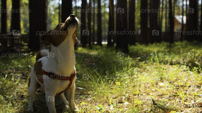 Портрет счастливой собаки Джека Расселла на зеленом лесу и траве