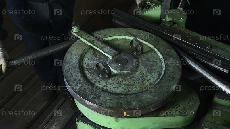 Дисковая машина для изгиба металла. креативное. старая стальная машина для изгиба металлочастей. заводская машина для изгиба стальных труб