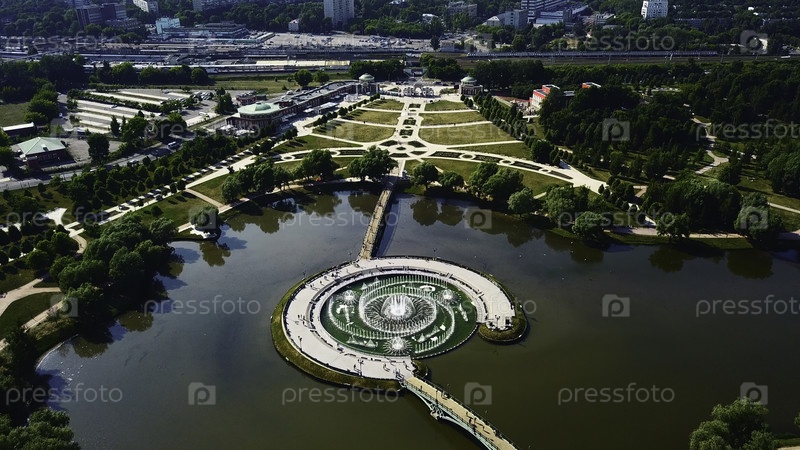 Геометрические пейзажные тропы и фонтаны.Креативные.Вид сверху на декоративный парк с дорожками и фонтаном.Исторический парк с фонтаном в пруду и роскошная геометрическая аллея