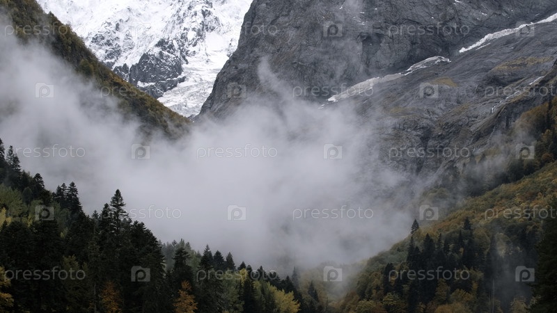 Творческий, красивый горный пейзаж в облаках, эффект таймелапса