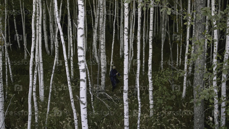 Прогуливаясь по лесу с телефоном. акции. молодой человек в стрессе гуляет по лесу со своим телефоном. мужчина заблудился в лесу с телефоном и ищет помощь