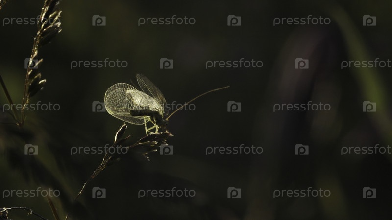 Стрекоза сидит на краю травы.Креативно.Прекрасное насекомое с крыльями сидит на траве в солнечный день.Стрекоза на траве на летней лужайке