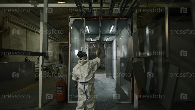 Производственное рабочее место, сушка металлических листов на сталелитейном заводе. креативность. линия с висящими металлическими деталями
